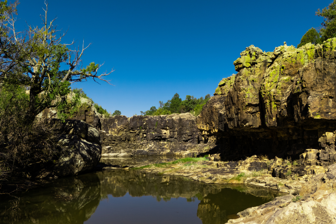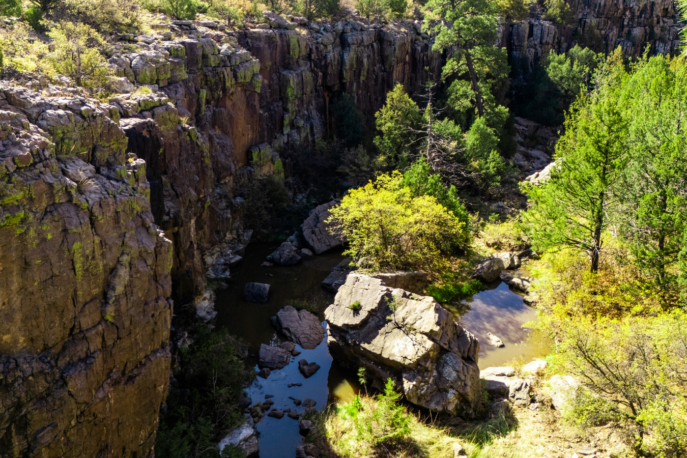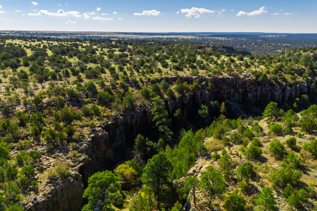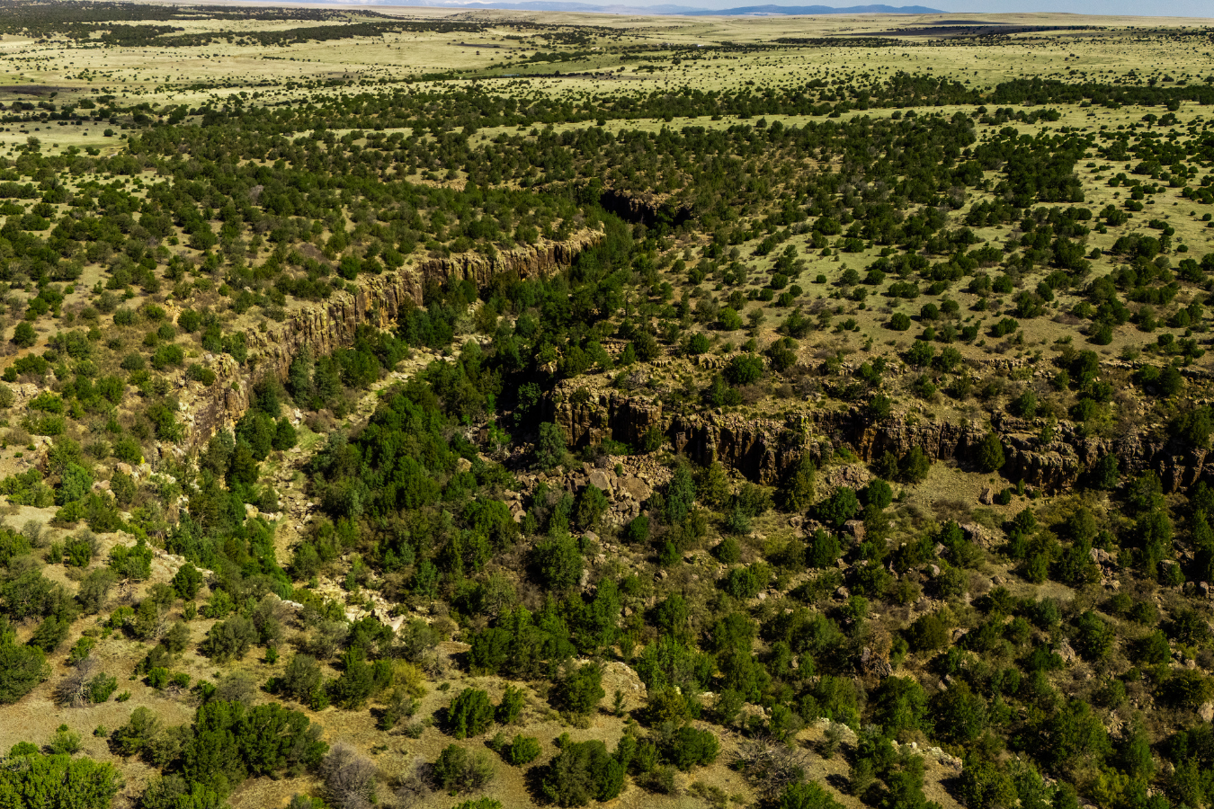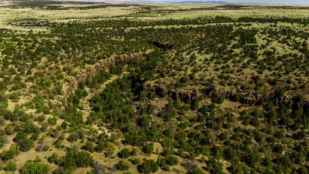 The Meadow Crest Ranch boasts a diverse terrain of open plains and dramatic canyons. Along the North side the ranch is open grassland with juniper trees, whereas the South end consists of deep canyons with live water, pinion trees, and ponderosa pines. The primary grass in the area is blue gramma. Elevations on the ranch vary from 6,000 feet to 6,500 feet. Annual rainfall is around 15-20 inches per year with the bulk of the moisture coming during the monsoon season which is June 15th through September 15th. One can expect to enjoy the weather of all four seasons.