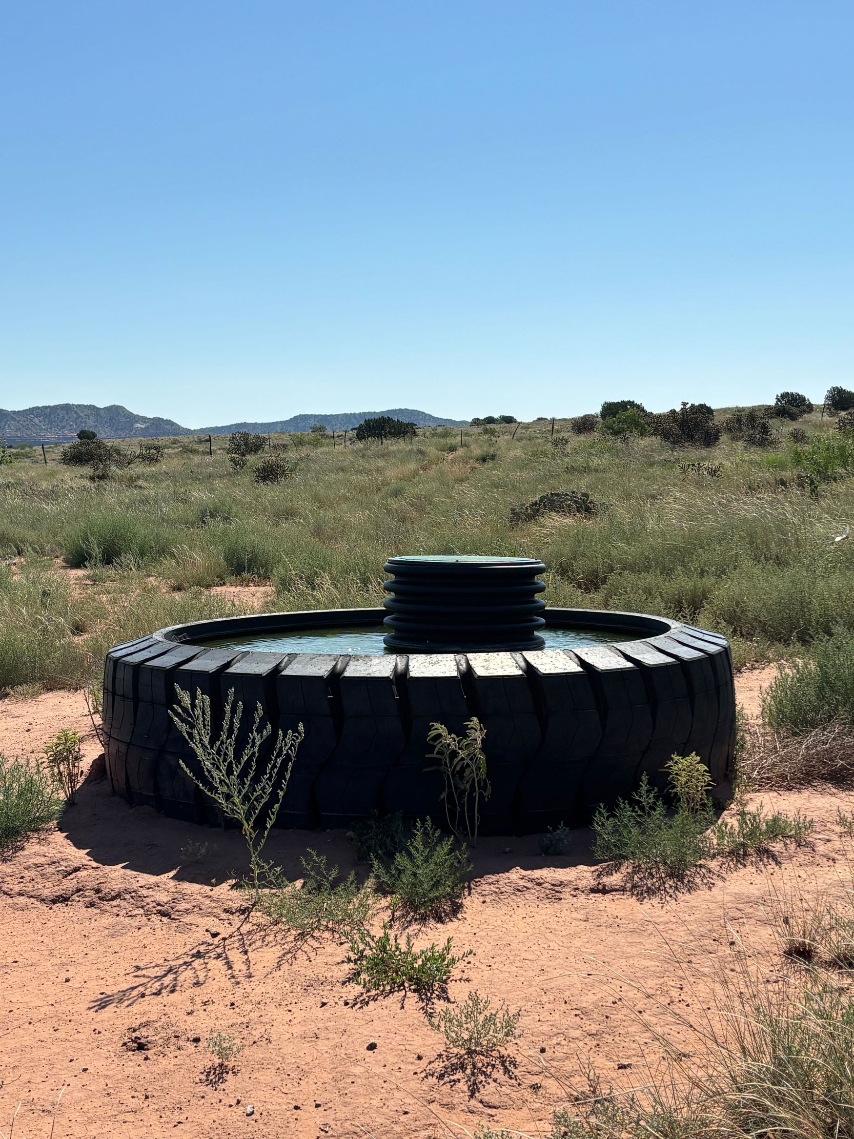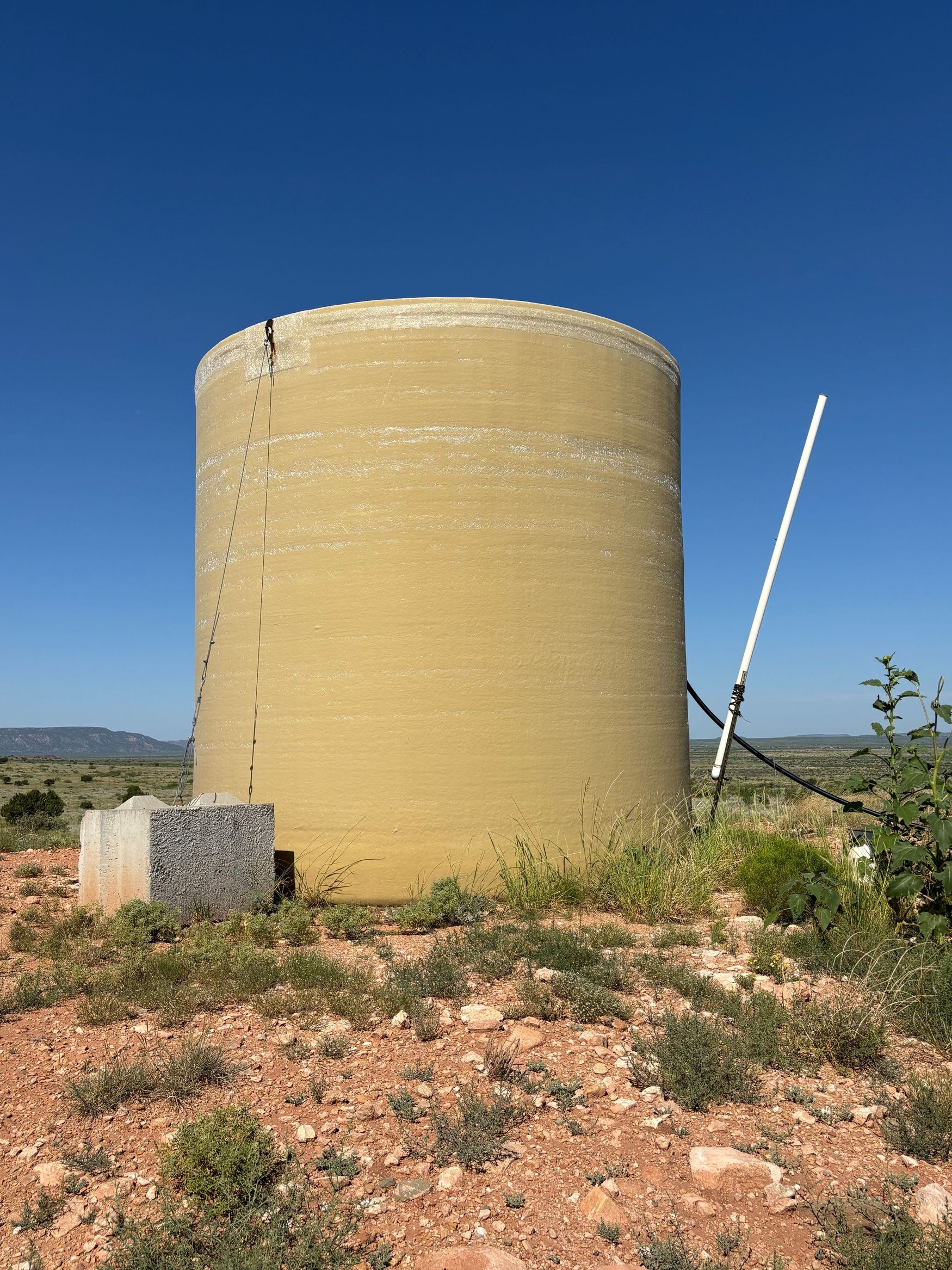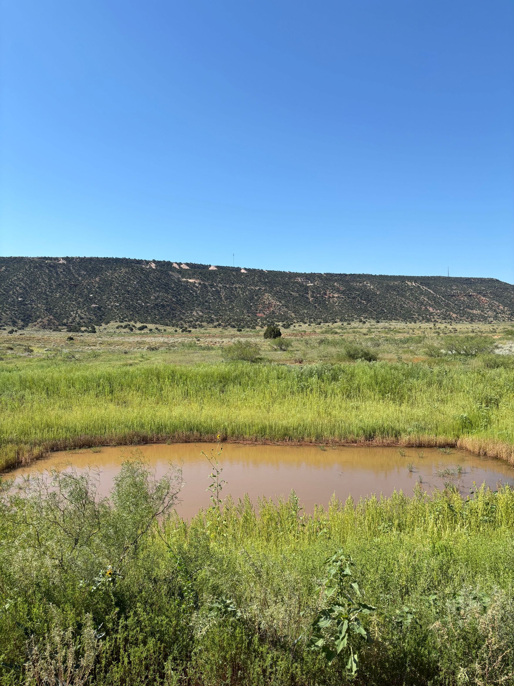 The landscape supports a diverse mix of vegetation, including grama grasses, juniper trees, and mesquite, creating suitable conditions for both livestock and wildlife. The ranch is watered by two solar wells and one windmill, with the two solar wells feeding a poly pipeline system that supplies one storage tank and nine drinkers. Multiple earthen dirt tanks also provide additional surface water across the property.
