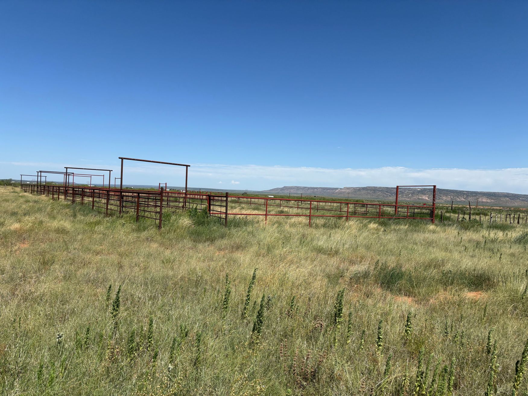 Montoya Ranch is divided into two primary pastures, with a well-constructed set of working pens positioned between them. The fencing is in good overall condition, supporting immediate use for cattle or other grazing operations.